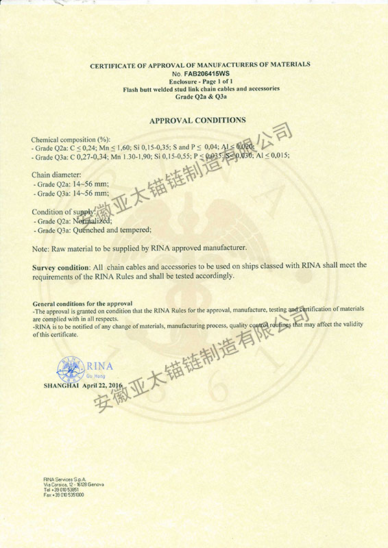 安徽亞太錨鏈制造有限公司是國(guó)家高新技術(shù)企業(yè),也是國(guó)家GB/T 549-2017《電焊錨鏈》標(biāo)準(zhǔn)的起草和制定單位之一。公司旗下設(shè)有錨鏈分廠、浮標(biāo)分廠、舾裝件分廠等多個(gè)分廠。公司專(zhuān)業(yè)從事φ12.5mm-φ107mm二、三級(jí)船用錨鏈、浮標(biāo)錨鏈、錨鏈附件,錨、船舶曬裝產(chǎn)品、航標(biāo)、系船浮、船型標(biāo)、多種規(guī)格海洋監(jiān)測(cè)浮標(biāo)及航標(biāo)燈等產(chǎn)品的生產(chǎn)、安裝和服務(wù)。目前公司的產(chǎn)品銷(xiāo)往全國(guó)各地船廠、碼頭、航標(biāo)處、航道局、海洋局,并已走上國(guó)際市場(chǎng),如東南亞、中東、歐美等國(guó)家。